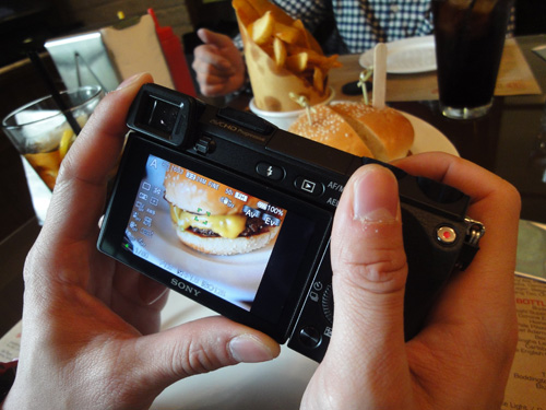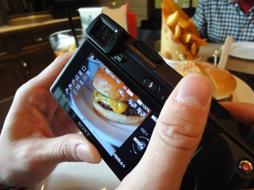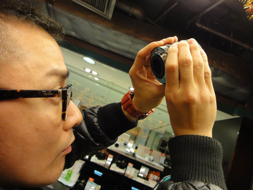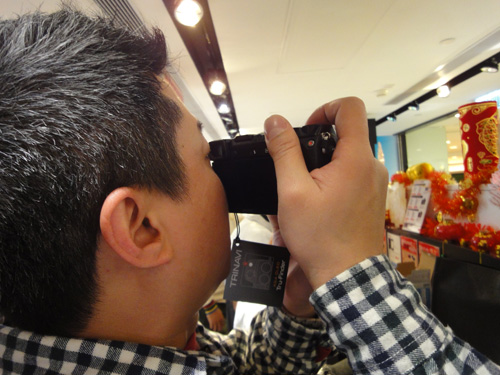100%電子觀景器,係 NEX-7的其中一個賣點,拿上手試機,銀手當然就試呢部份吧。