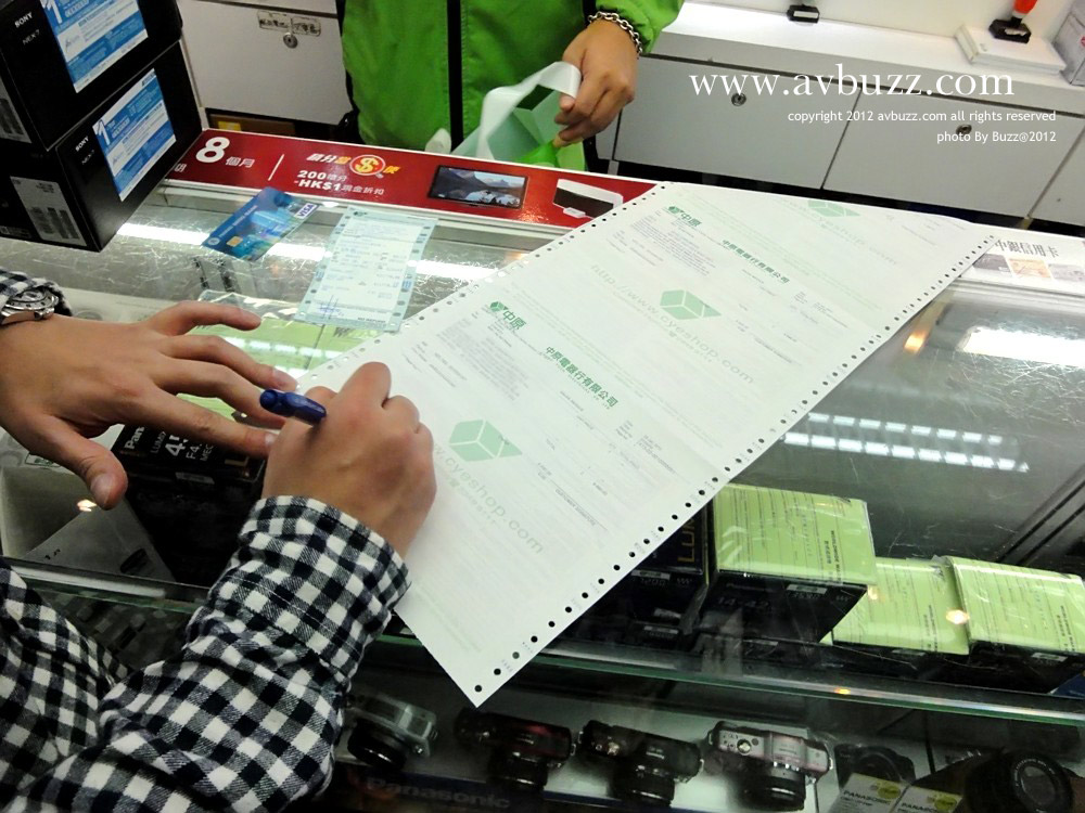 銀手拿著早前附全費訂購的單據來到收銀處取貨。