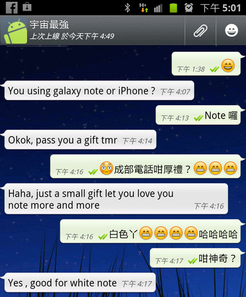 哈!!!!唔怪得佢問我用 iPhone 定 Note 啦,真係太感動,唔好對我咁好啦,我會愛上你架。