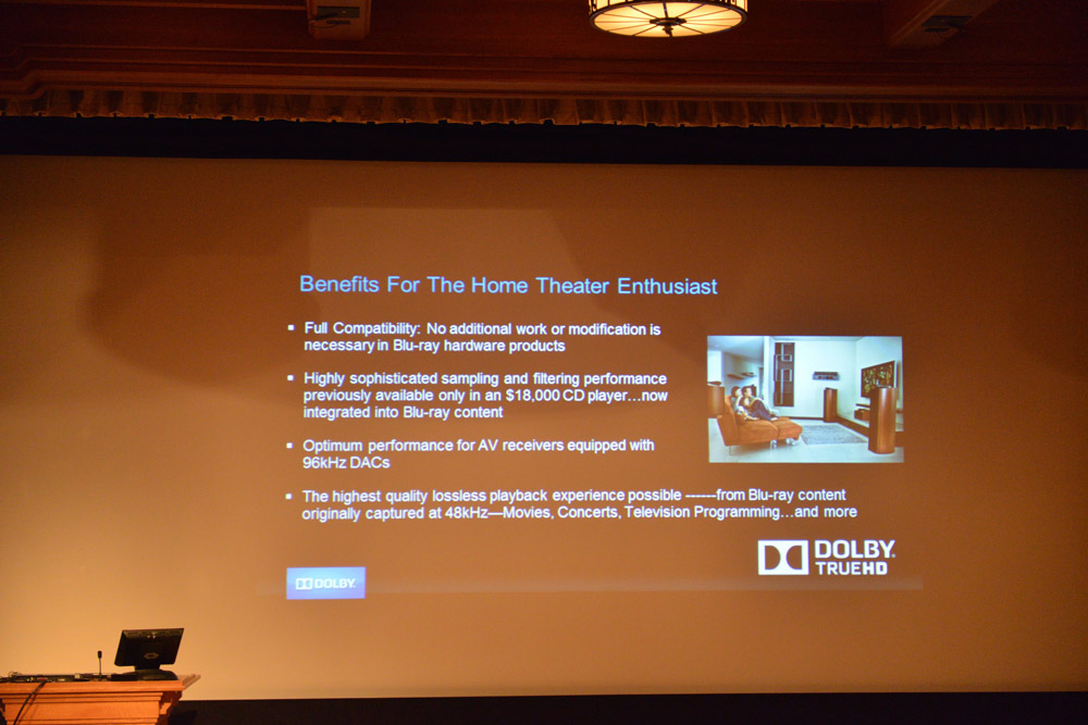 就是在這個發佈會上,提供擁有 DOLBY TRUE HD ADVANCED 96K UPSAMPLING 的藍光碟聲效技術作為播放示範,