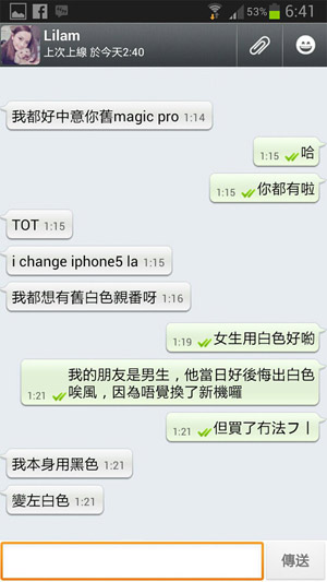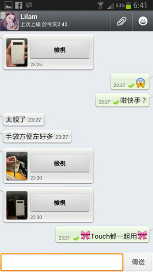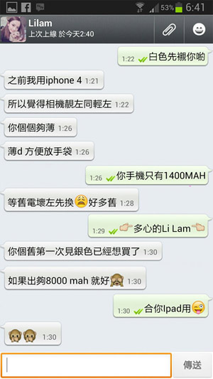 她屬於高用量人仕,平日出街, iPhone和 iPod Touch 需要一起分工,否則未到日落,手機早就把電量花光了。