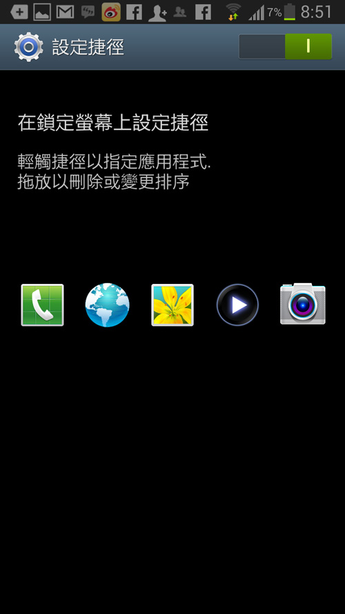 滿意Android 4.1.1 Jelly Bean 作業系統的表現,尤其鎖機狀態下,依然可以給我使用五個快速啟動功能,