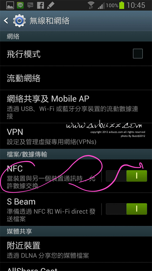 來到旺角聲耀全音試用,接駁方法第一步是先要把 Note II 內裡的 NFC 功能開啟,
