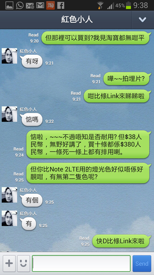 其實我一直誤會紅色小人所講的 $38人民幣係 山寨Lightning浮跨線,所以我話淘寶見唔到,就係咁解。