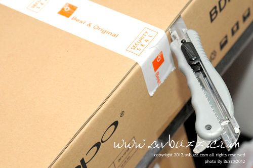 每部 OPPO BDP-103 都有這條搶眼的橙色膠紙,作為原裝行貨標記。 好啦,就地在聲耀全音陳列室第一時間開封吧~~~~
