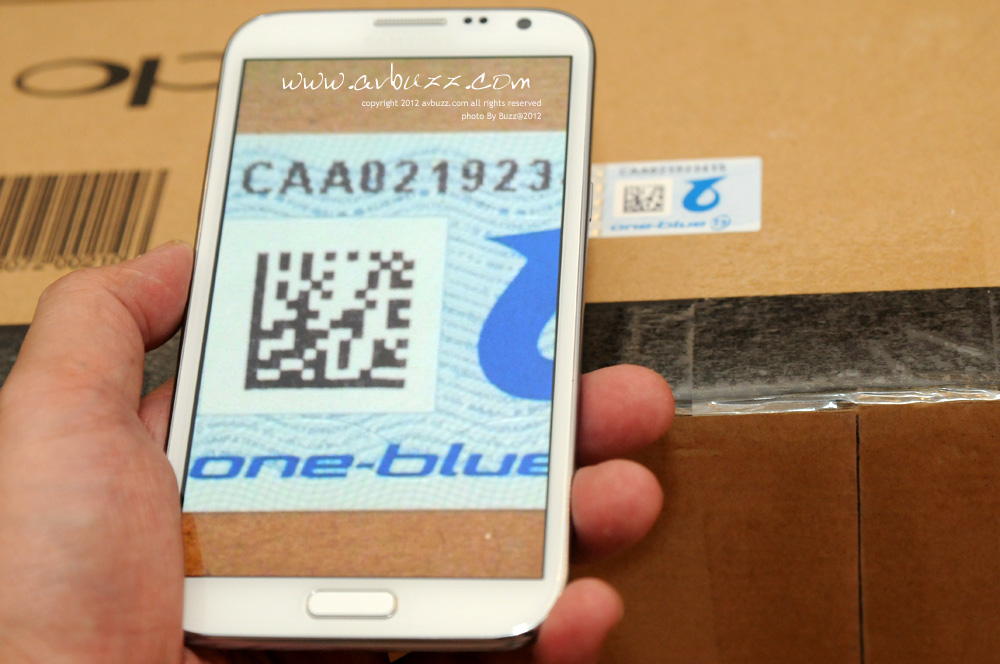 利用智能手機的 QR Code app掃一下,就會有一組獨有的號碼出現在這個 app上, 核對貼紙上的號碼相同,幾好玩丫。
