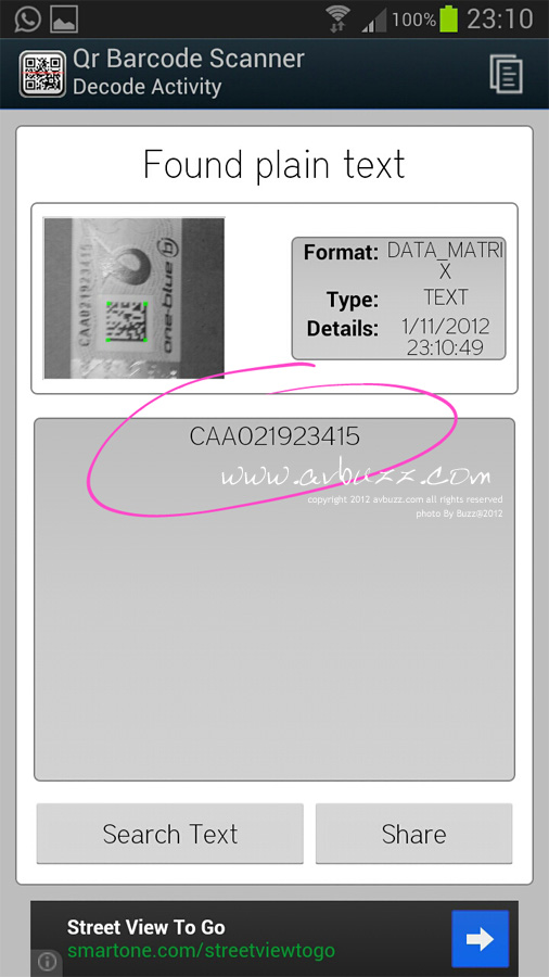 下圖就是透過智能手機的 QR Code 掃完之後,得出的號碼,核對紙盒上的號碼如屬一樣。 由於每一張的 QR Code的圖像和 英文加數目字並不一樣,所以生產時比較麻煩。