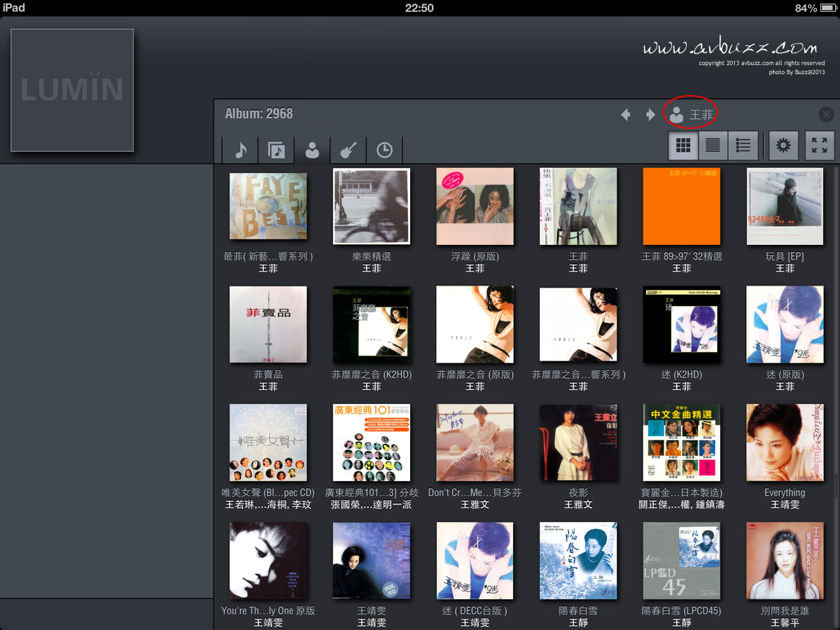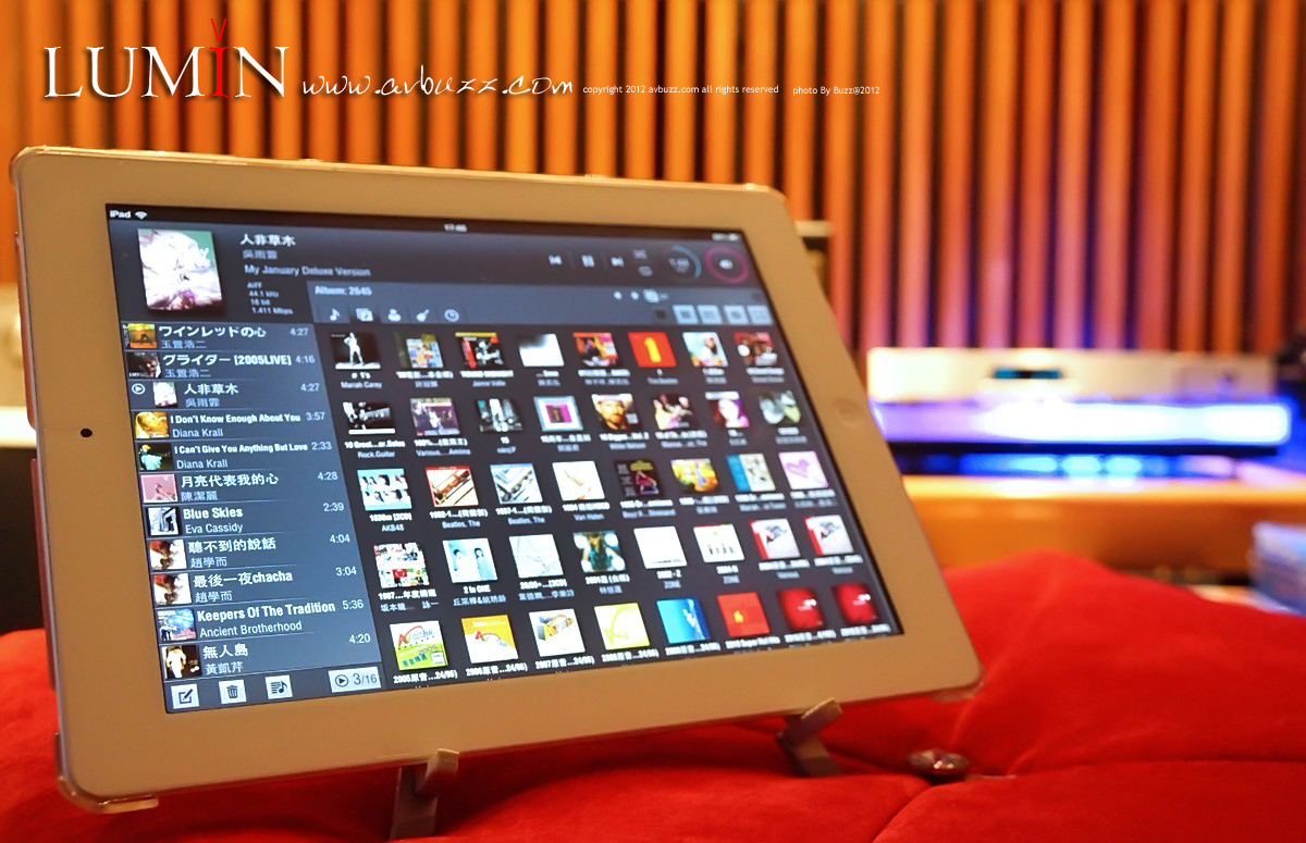 在第一集Video中,有留意到選歌時縮圖的速度嗎? 是比 Apple 的Remote快好多, 這是與這個app的設計有關,LUMIN 這個 app ,是把封面縮圖和文字資料,全數記憶在 iPad體內, 就算 iPad 離線,所有縮圖和歌曲資料,都能在 iPad內找到。