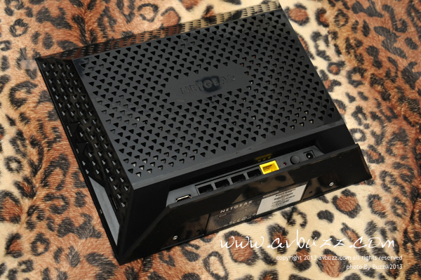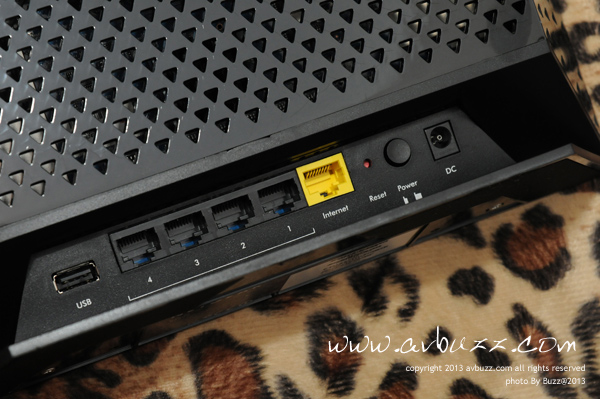 背面穿孔式設計,有助夏天運作時能較易散熱,她設計得咁靚仔,我更加唔會把她收起用,加上背面佈滿這些散熱孔,一點都不擔心散熱問題。 擁有 1 組 WAN 與 4組 LAN,速度當然全部達到 Gigabit 吧,這是我舊 Router 所沒有的重要賣點。 電源插口,一個 USB 2.0的傳輸埠,在背面最低的位置接駁, 而她本身是內置三天線,但沒有外露影響外觀,設計者應記一功!!!!