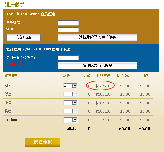 圓方5號院, 2D Man of Steel 版本戲票每張港幣 $220。