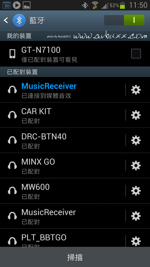 apt-X 個個人屋企都有 AirPlay 咩,如果無,咁係咪呢世都無得玩無線播歌呢? 答案當然唔係啦。 Nu Force BTR-100 利用藍芽傳送方式,把流動裝置內的歌仔 ( 或者叫聲音 ) ,用光纖數碼輸出去解碼。 而 Nu Force BTR-100 是用上了 apt-x 技術。 apt-x 是現時最先進藍芽傳輸制式,使用 24Mbps 頻寬,能有效串流播放無損格式,聲稱音質媲美CD。 無線傳送聽歌 首先把 Note 2 與 Nu Force BTR-100 透過第一次配對,今後就可以方便使用下去。 呢部機有 8個記憶,相信都應該夠一家大細用架喇 。