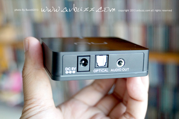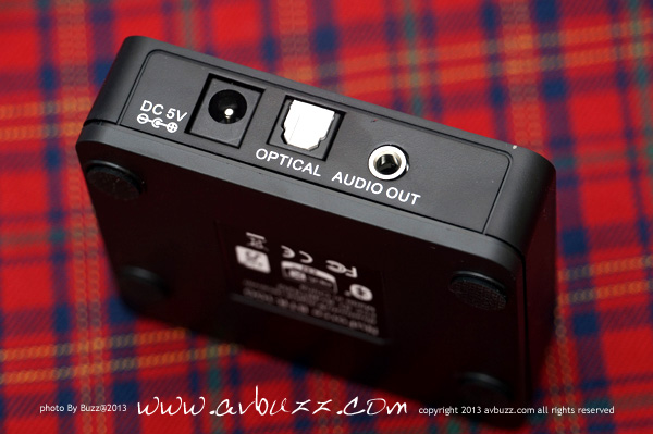 究竟呢件手掌咁細的東東,有什麼可以玩呢? 除了前面板有顯示燈外,背面有圖中所見三個接口,咁簡單唔需要介紹喇下化。 唯一訊源輸入當然係藍芽啦,輸出有圖中所見呢兩款。