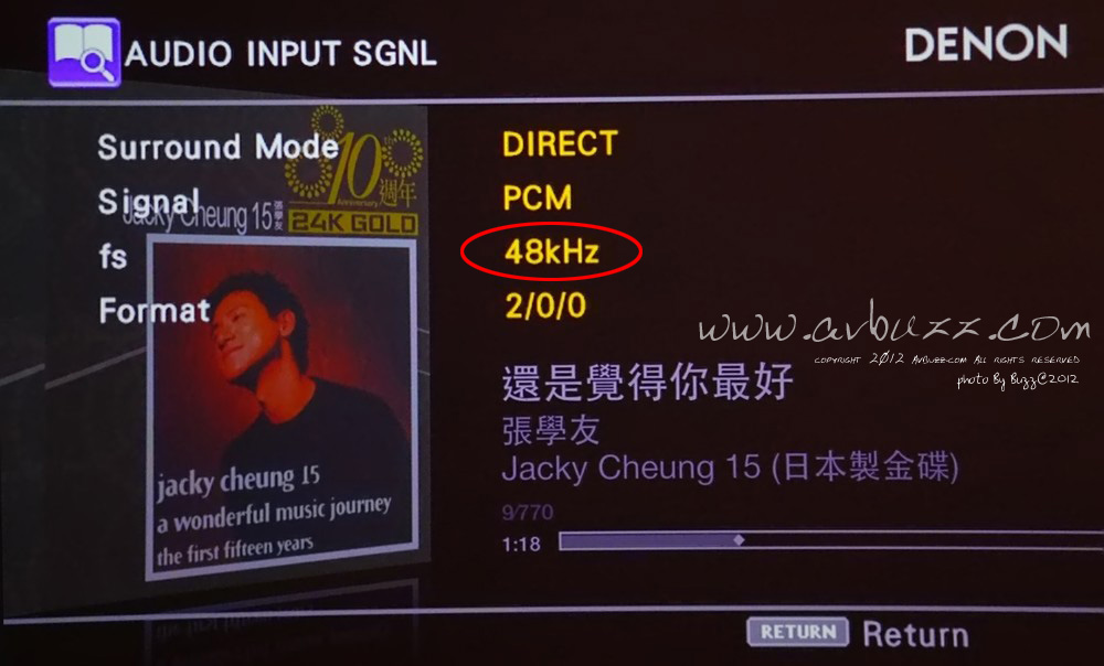 來自 Apple TV 的音樂檔,透過 Av amp 所得到數據顯示,如圖中所見, 本來原檔是 44.1 kHz 的音樂檔,無論用家知道或不知道,喜歡還是不喜歡,通通變成 48 kHz 輸出。 如果你是路人甲乙丙,要求不高,這個 48 kHz 輸出效果是完全無問題的。 但發燒友可就不一樣的睇法,原檔 44.1 kHz ,經過 Apple TV 後變成 48 kHz 輸出,能接受的那一個都唔會叫發燒友吧。 在我家中系統用耳收貨的話,以 Apple TV