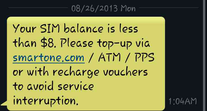當儲值咭內的錢用得七七八八,數碼通就會發出訊息通知用戶要增值。