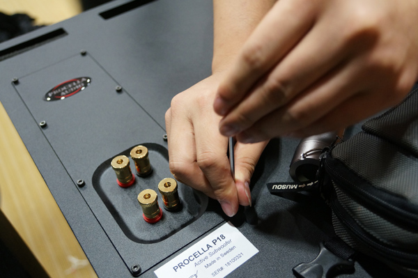 最終擺放位置是如圖所見,兩隻P18,以一橫一直分成左右兩邊擺放。 而事實上也能在這個先天惡劣環境下,達到拳拳到肉,腳腳穿心效果, 播放音樂MV時,能充滿節奏感的爽快,富有彈力的鼓聲,討好每一個在場人仕。