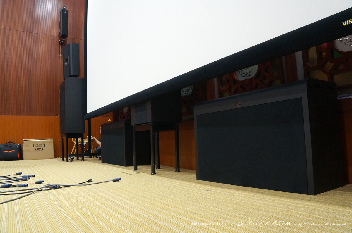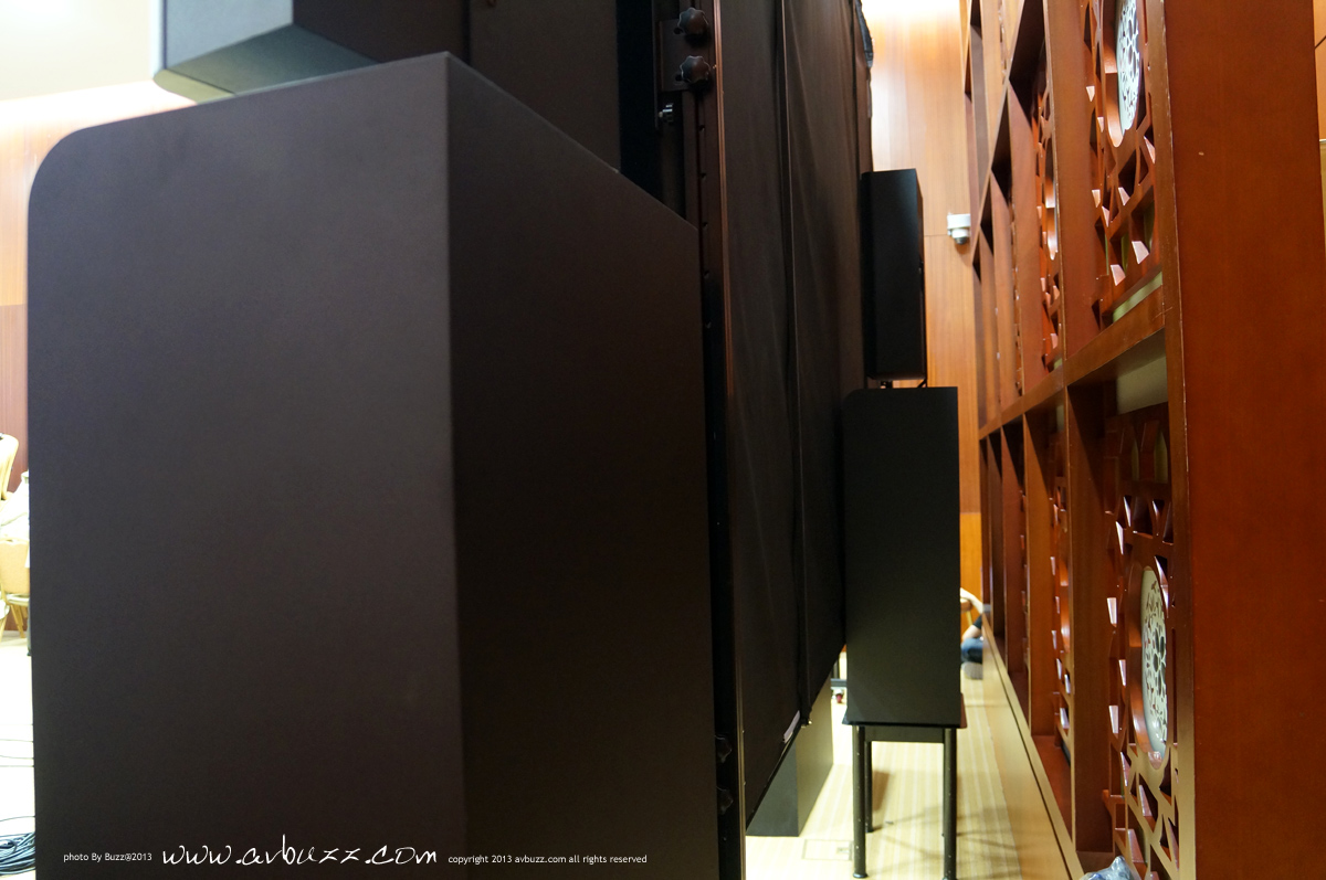旗艦音箱 瑞典 Procella Audio P860 旗艦音箱,是今次主角。 中置音箱放在透聲幕後面,是最好的擺放效果。