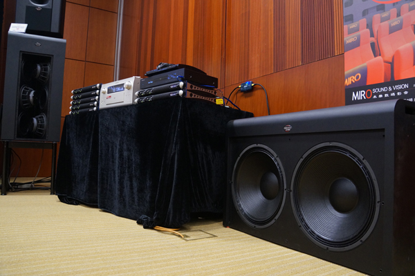 有源變無源 房間面積夠大, Ricky Chan 除了用上兩隻雙18" 低音炮外,還把本來屬於有源功能,使她變成無源。 依靠外置後級,以橋接的方式接駁,把本來 700 瓦+ 700瓦的 P18 低音炮, 變成 1400 瓦+ 1400瓦的強大威力,發揮這兩隻低音炮的最大潛能。 密封式設計,速度快都是 P18 雙18"低音炮的強項,你能想像到 1400 瓦+ 1400瓦的能量感嗎? 親身來到會場就能感受到。