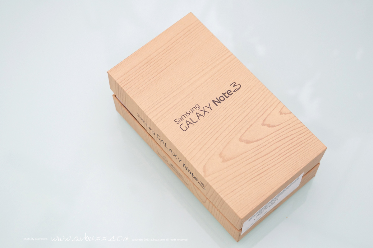 返到家裡影返輯開箱圖先得。 呢個就係今次Note 3的外盒,幾靚仔啊,好過之前白色多多聲。 而且呢個盒的設計理念,好配合今次Note3機背的理念,即係話機背睇落係真皮,其實係膠, 個盒睇落係木,其實係紙皮,哈~~~估你唔到囉。