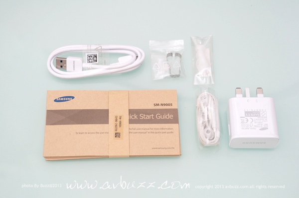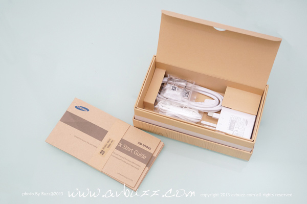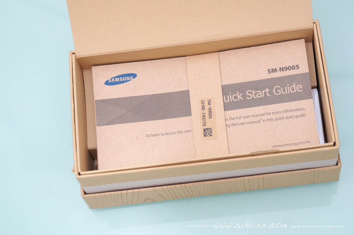 把盒蓋打開之後,可直接見到 Note 3 機身, 把她移走後,可見到還有下層住客。