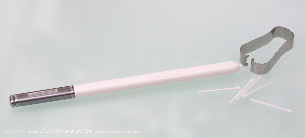 登登登~~~凳~~~答案就係......... 圖中所見五枝白色棒,是SPen的筆頭,是提供給用家自行更換損耗品, 用家用付來的金屬夾,把SPen舊筆頭拉出來,再用金屬夾把新筆頭接上就可以了。