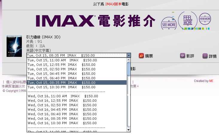 太空,那個空間感,屋企部電視或投忍雞都無可能與電影院屏幕相比。 要感受太空效果,我猜IMAX一定係首選吧,雖然呢套電影並非真 3D,但 iSQUARE 所提供的是 IMAX 3D版本。 3D 我就無福消受了................