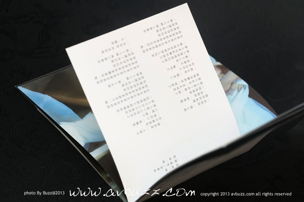 其他歌曲我都喜歡,在這裡沒有時間和大家一一分享,沒有後侮購入這張專輯, 相信未來的一個短時間,這專輯都會與我渡過每一天。 雖然我並不喜歡這個封面做型,但整體包裝與歌詞集內的圖片都是滿意,尤其我喜歡這個盒裝。