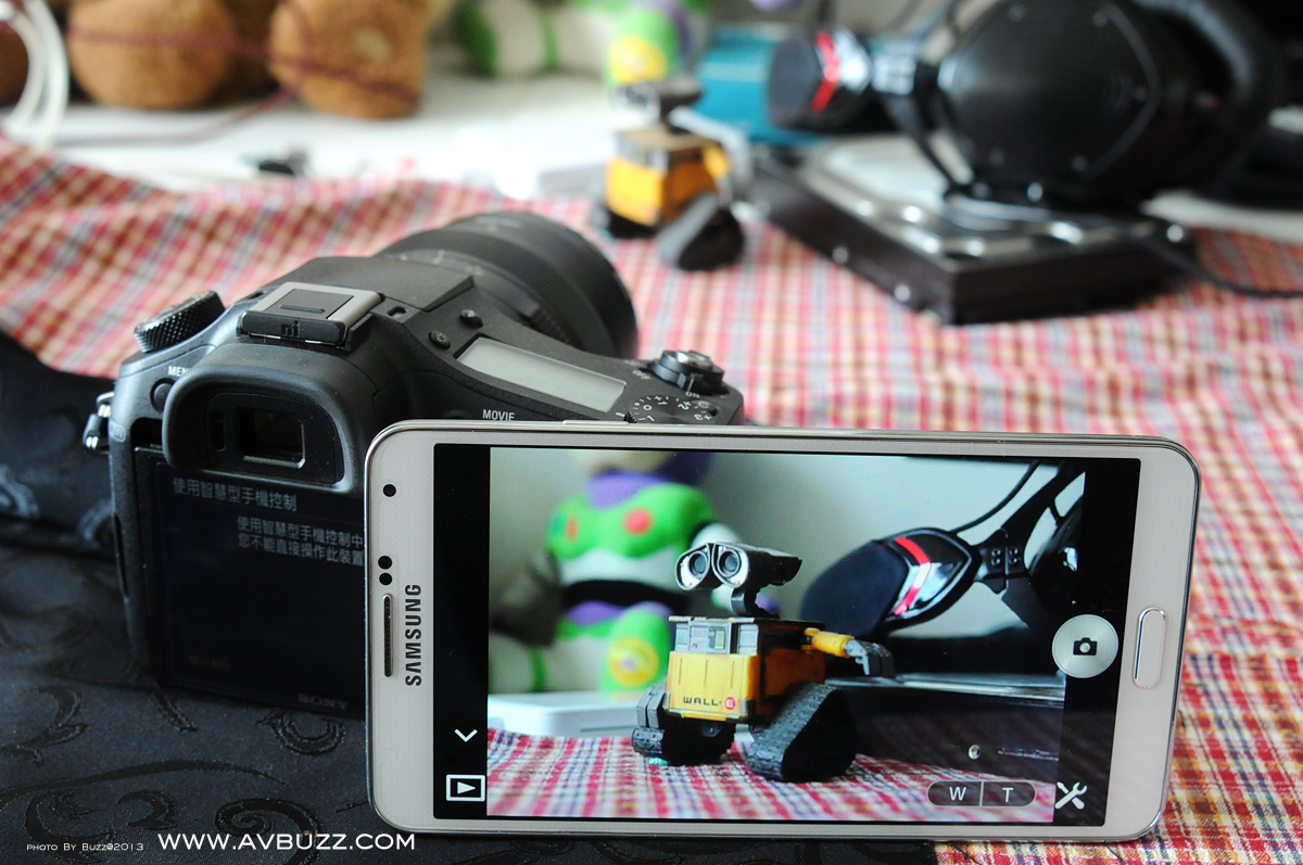 智能手機接駁後,用家可在智能手機上操作 RX10 的 Zoom和 Shutter,其他功能就無架喇, 例如 : 現在用手指篤個手機屏幕,把焦點放在巴斯公仔身上,用家可以篤,但無反應咁解遮。