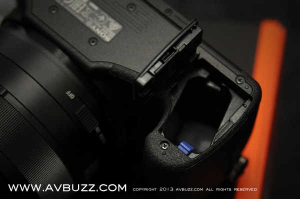 SD記憶卡位置並不放在一起,她們是分開獨立房間。 下圖所見這機是使用跟 NEX 一樣電池,使我換機過渡期更加開心。