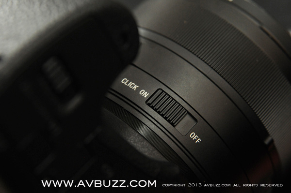 光圈環底部有開關鍵,用家手動光圈環時,可以選擇轉動時有一格格的手感和聲音。 或者選擇無段靜音,拍片時轉動光圈環,就不會受聲音所影響, 確實是一個非常實用貼心功能,又勝一仗。