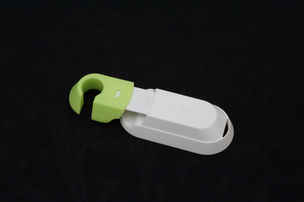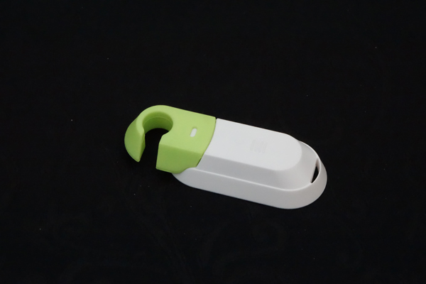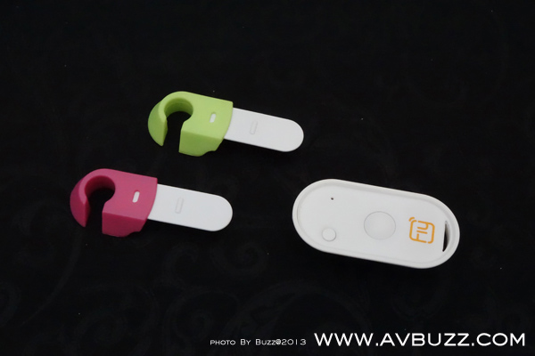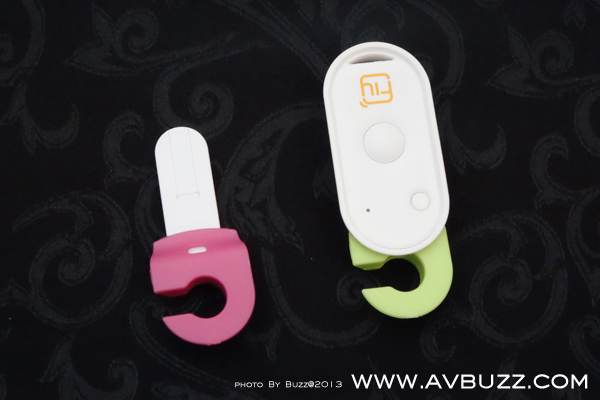留意搖控器上螢光綠色勾,是可拖出來作為相機腳架之用,為了使相機更穩定, 廠方跟機多送一隻螢光粉紅色勾,給用家一左一右來夾住機身之用。
