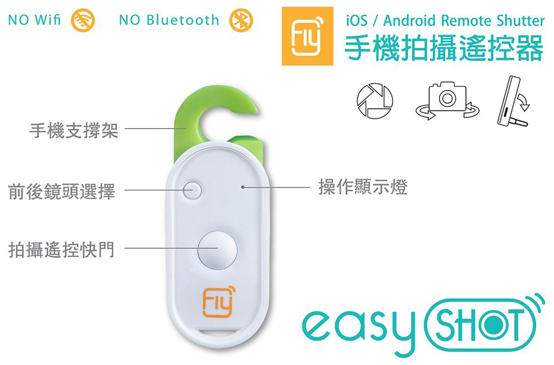 一觸多發 Easy Shot 其中一個強項就係只要開 app就用到 ,過程完全唔需要配對或者什麼連接。 那怕是同一時間多部 Android 或 iOS 手機或平板電腦,只需一個 Easy Shot搖控, 可以同時觸發所有在場的快門,大合照時,只需一按,人人手機都有該張相了, 朋友智能手機也能受惠,強到無朋友。 Easy Shot市面每部售約港幣 $260上下。