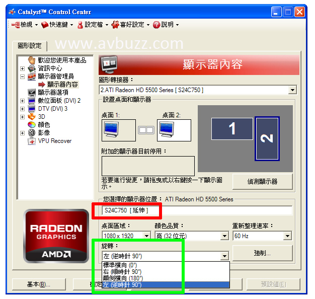 首次安裝時,只需在使用中的顯示卡設定三星Mon 延伸,並轉為90度。 咁就搞惦架喇。