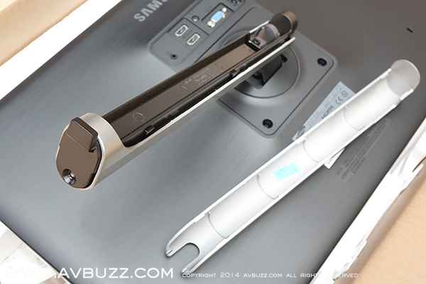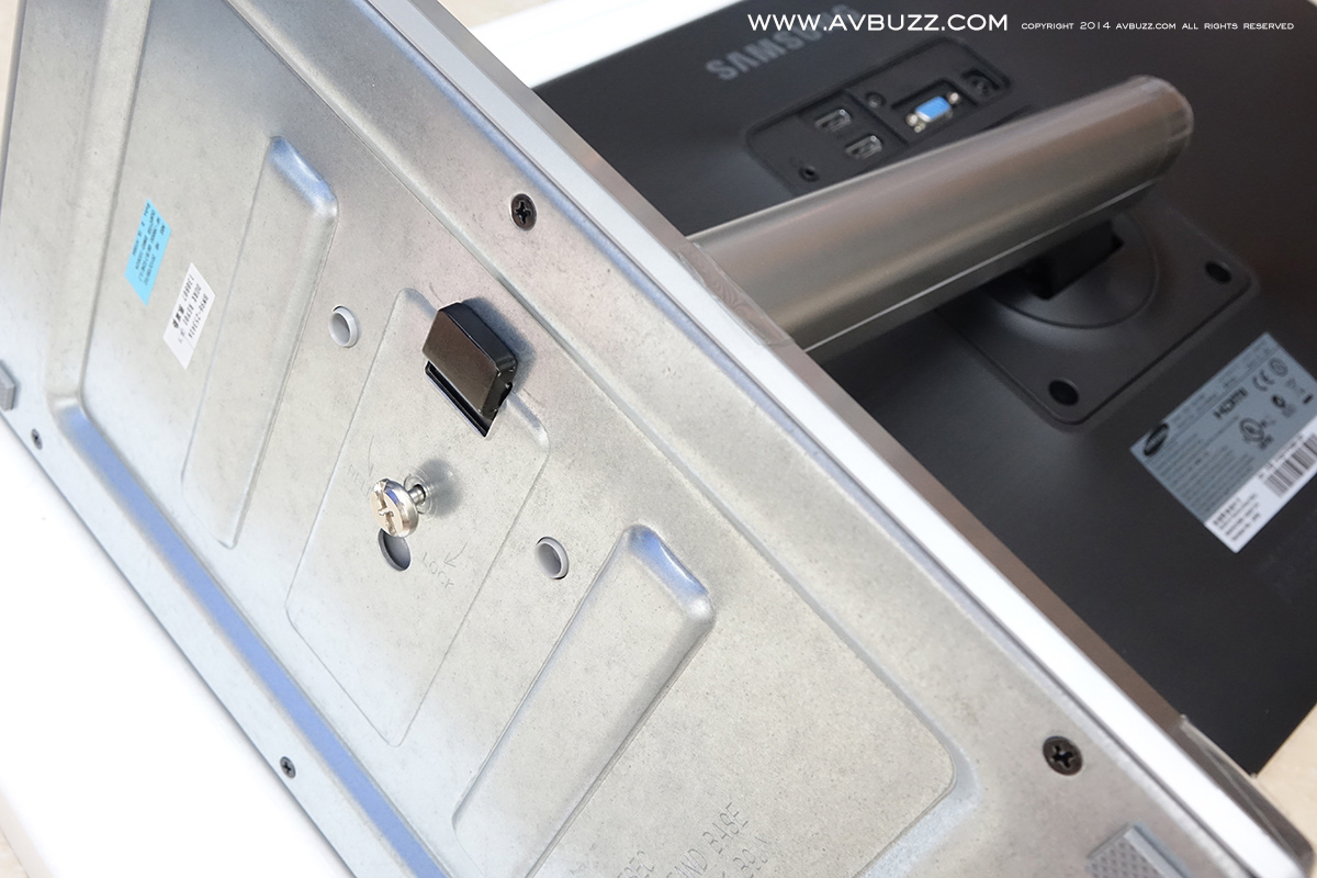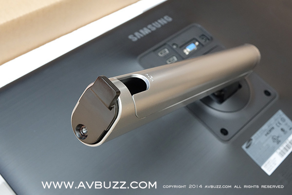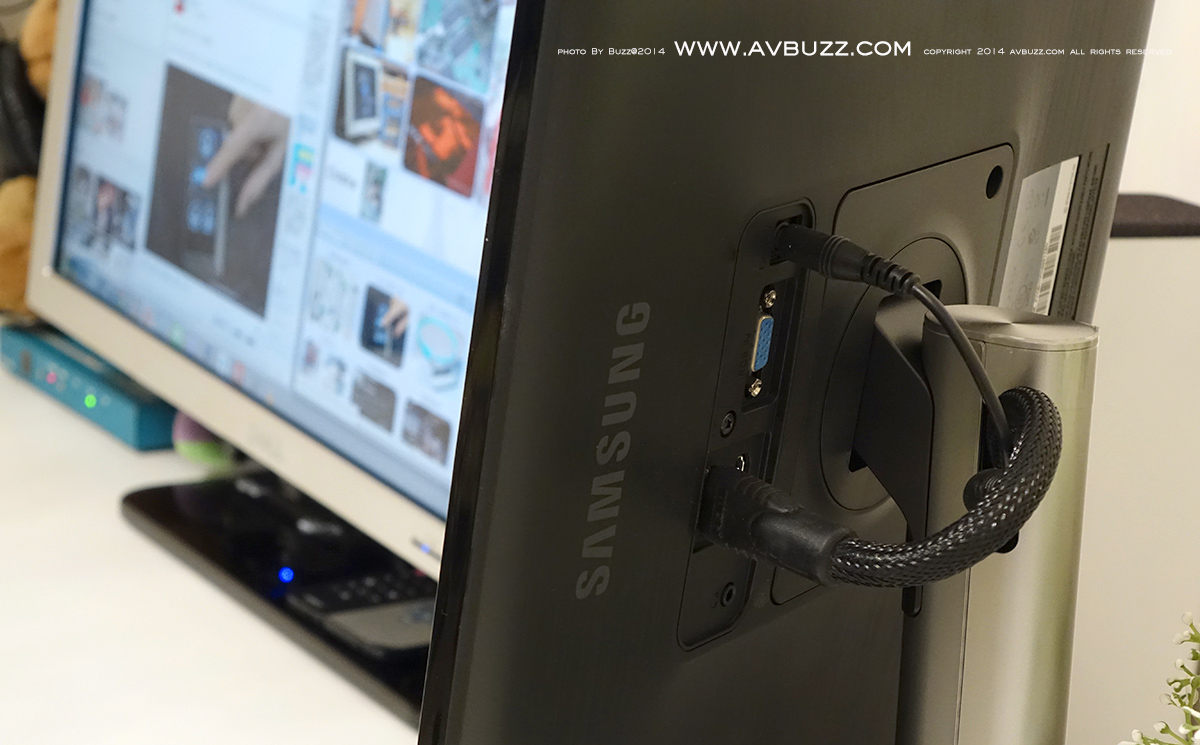 電源線與HDMI線,經過藏線柱就得到隱藏, 放心,呢個設計,絕對影響唔到轉動個Mon時影響到線材的。