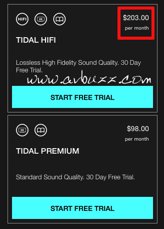 TIDAL 月費 $96 港元,就能享有跟 CD 一樣 16bit / 44.1 kHz 質素雲端音樂檔案播放。 付費時緊記不要經由 APP 版進入付費,因為如下圖所見, 用網頁版進入是$96,但用APP版來進入是 $203,每月差額達 $107 。