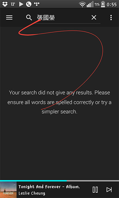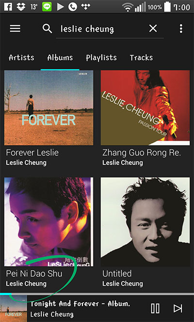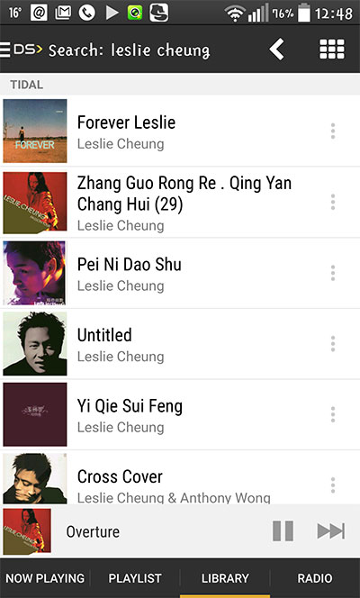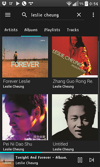 TIDAL 擁有屬於自己的 app,雖然好用過 BubbleDS Next ,但不能對應 LUMIN,唯有在 LG G3 和電腦透過 google chrome 玩住 TIDAL 先。 無論是電腦或是流動裝置播放,音質收晒貨之餘又方便。 如左圖所見,輸入張國榮係找唔到的,要如右圖輸入 Leslie Cheung 咁先找到。
