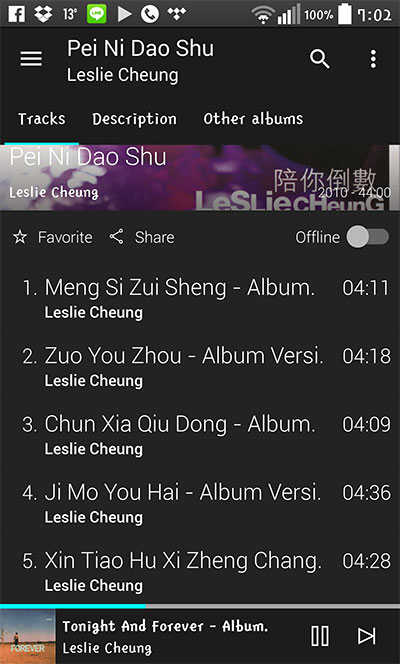 非發燒友專用 利用她的 app,在流動播放裝置都能陪著用家一起,最重要係可以多聽到最新推出的整張專輯, 唔需要聽來聽去都係那一堆歌曲,用得好開心,只需月費 $96 就能擁有,值得推介。 4月1日,自然是聽張國榮的歌啦。