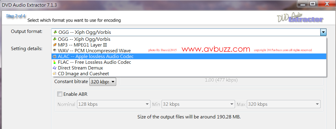 格式轉換 DVD Audio Extractor 之所以得我歡心,除了簡單易用, 能轉成不同聲音格式是取悅我的最大理由,當中包括我音樂庫裡的 ALAC 格式。