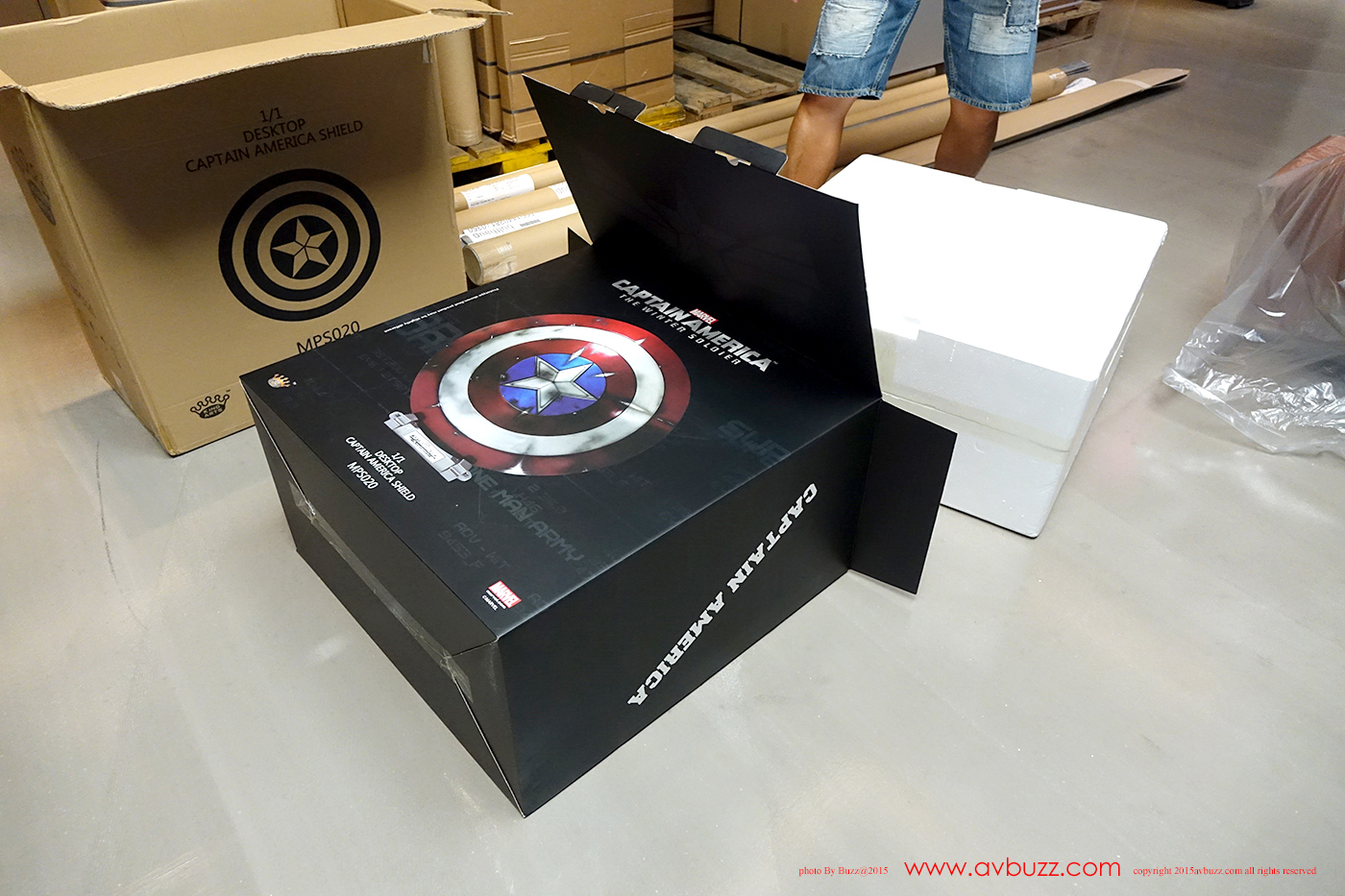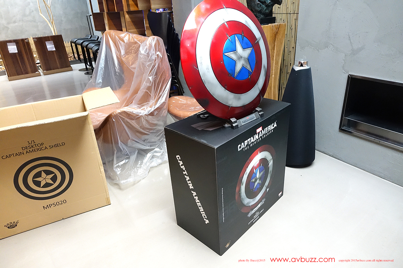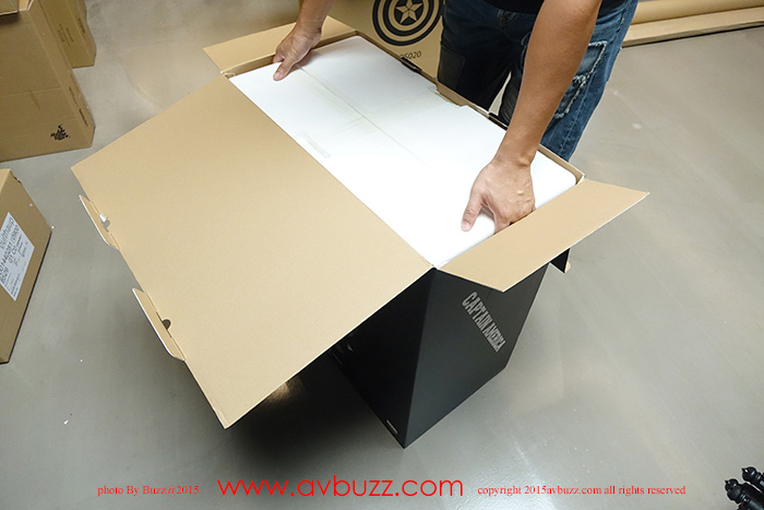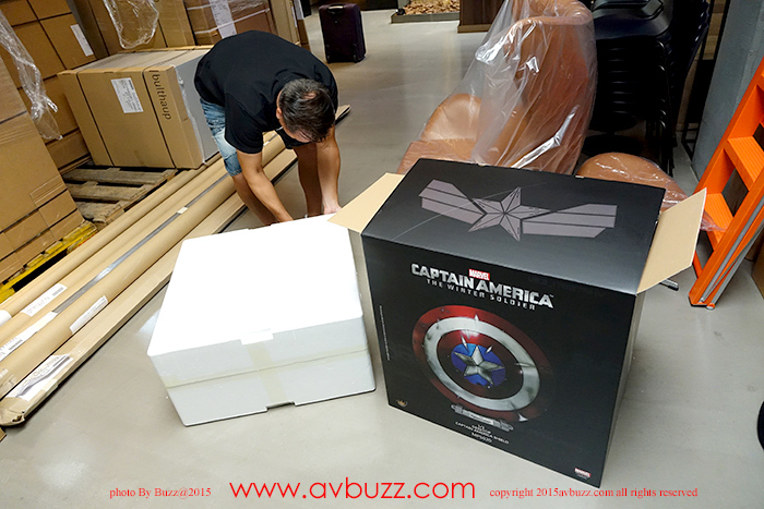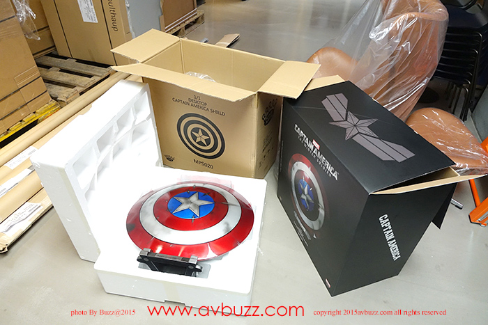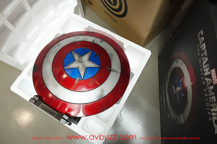 1:1 Captain America Shield 发布日期 : 2015年 8 月22日 图 / 文 : 巴斯 又到跟 Ricky Lee 玩具开箱时间了,今日主角系电影美国队长2里所出现的红色战损盾,属于 King Arts 1比1 皮带式设计座台款。 官网所介绍的这款战损盾有挂墙和座台两个款式,当然也有图中所见三个不同颜色选择,你又喜欢那一个款式呢? Ricky Lee 选择了座台款式,到手时是两层盒设计,拆盒后可见内里的发泡胶箱。