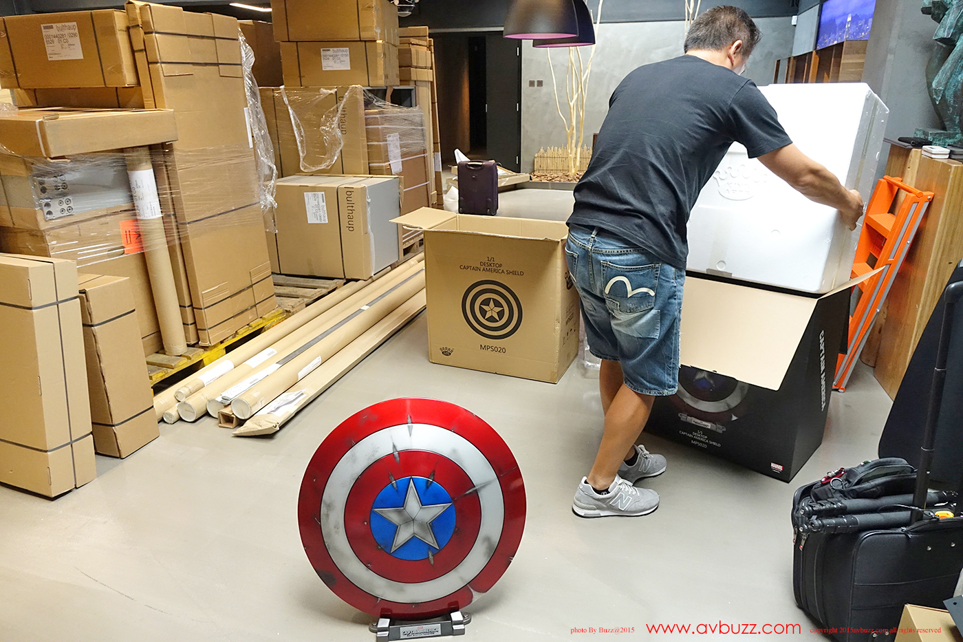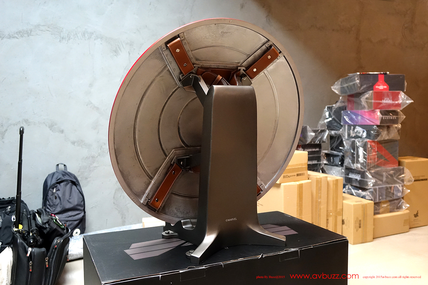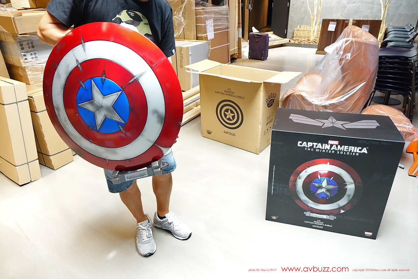 1:1 Captain America Shield 发布日期 : 2015年 8 月22日 图 / 文 : 巴斯 又到跟 Ricky Lee 玩具开箱时间了,今日主角系电影美国队长2里所出现的红色战损盾,属于 King Arts 1比1 皮带式设计座台款。 官网所介绍的这款战损盾有挂墙和座台两个款式,当然也有图中所见三个不同颜色选择,你又喜欢那一个款式呢? Ricky Lee 选择了座台款式,到手时是两层盒设计,拆盒后可见内里的发泡胶箱。
