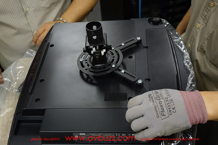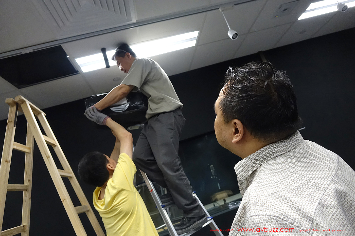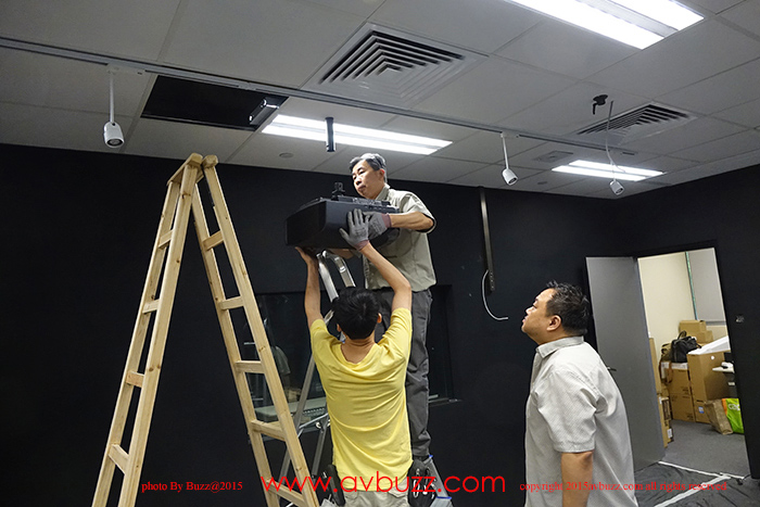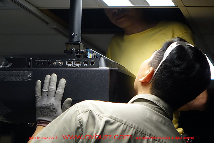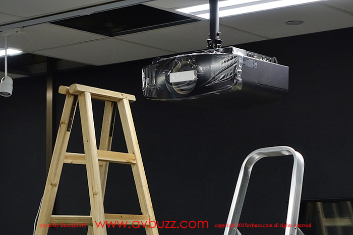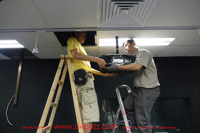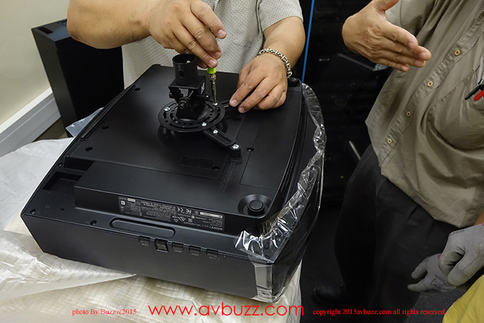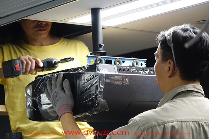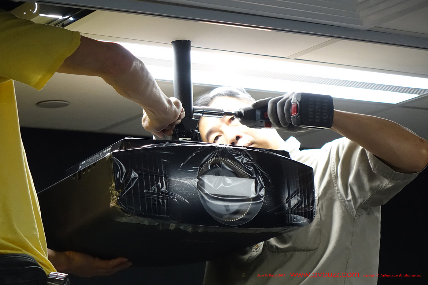 有工具帮手,很快便完成天花柱位安装程序,接下来当然是把这部市价 8万多港元的投影机上架了吧。 Ricky 在看着每一步,确保没有差错。
