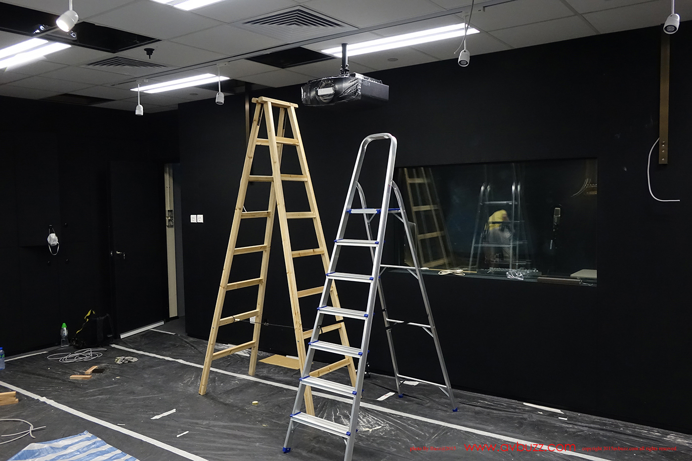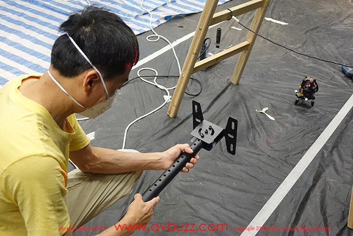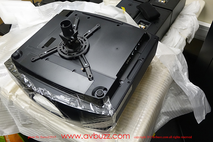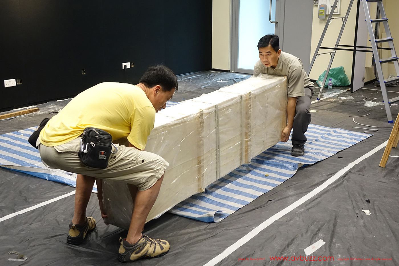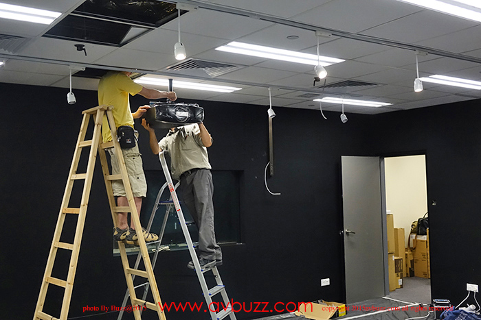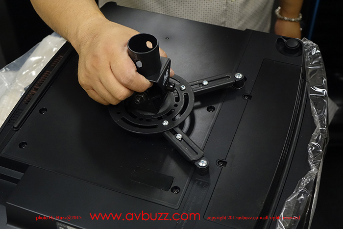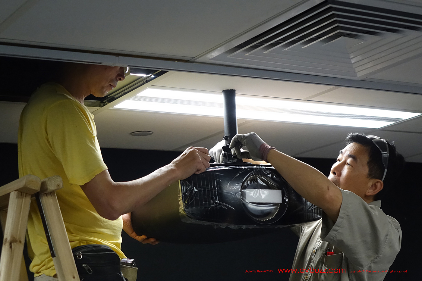 有工具帮手,很快便完成天花柱位安装程序,接下来当然是把这部市价 8万多港元的投影机上架了吧。 Ricky 在看着每一步,确保没有差错。