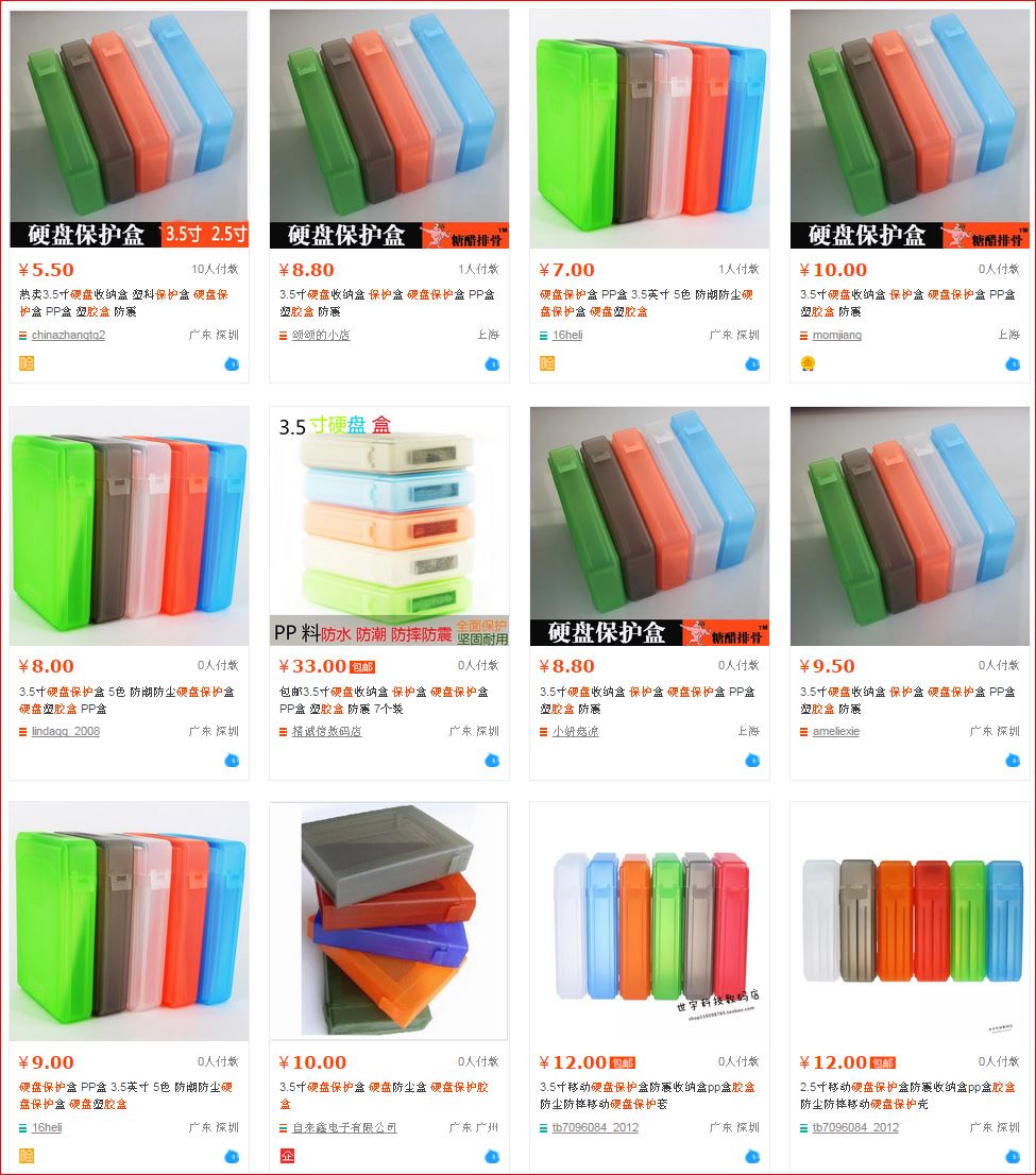 等我用 硬盤保護盒 這個名詞找找先,嘩~好平,但好重日本成 Feel 囉,唔係有錢買硬碟,無錢買膠盒下化? 佢地個樣咁狗肉,我直頭唔想正視佢,送比我都唔要,仲講要錢? $12 人民幣 太好了~~~終於比我找到,呢度賣$12人民幣,相等於 $15 港幣,足足平左$10 港元,買20個豈不是節省了$200 港元? 扣埋運費都開心死。就訂 20個。 懶到你咁的人,都係第一次見。