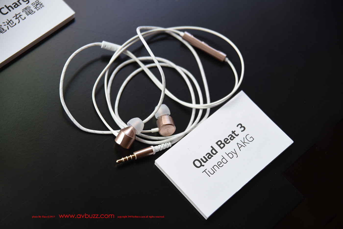 下圖所見,是今次跟V10 一起來的 Quadbeat 3耳機,重點是可見 Tuned by AKG 字樣,這個字樣除在包裝上可見,在耳機身上也同樣找到。 誰是 AKG ? 唔.............AKG 呢........AKG ,是 Ah Keung's Girlfriend 的縮寫。