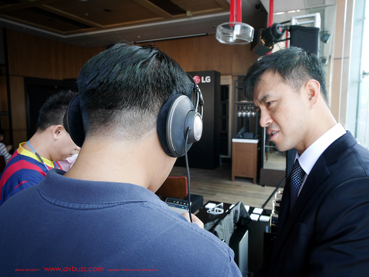親身體驗 當日 LG 電子香港流動通訊部產品策劃部總監 文晟準 先生,為各記者們現場示範這個重點,並為大家示範 LG V10 開啟與關閉 32bit Hi-Fi DAC 功能的差別。 當日全靠他為大家做這個示範,比對開與關的效果,尤其對大耳機的接上, 起了重要示範作用。 這個示範並唔係帶出 AKG 612 Pro 用 LG V10 推最好聲,事實上用手機無可能是 AKG 612 Pro 的最佳表現, 這個示範只使大家了解到 V10 能自動把 50Ω 或以上高阻抗耳機接上後,V10自動把輸出增加,使接上的高阻抗耳機,能發揮得比較好。 另外 文晟準 先生給大家示範 32bit Hi-Fi DAC 功能後,使大家了解這個功能實在太好用,是不應關閉的享受,