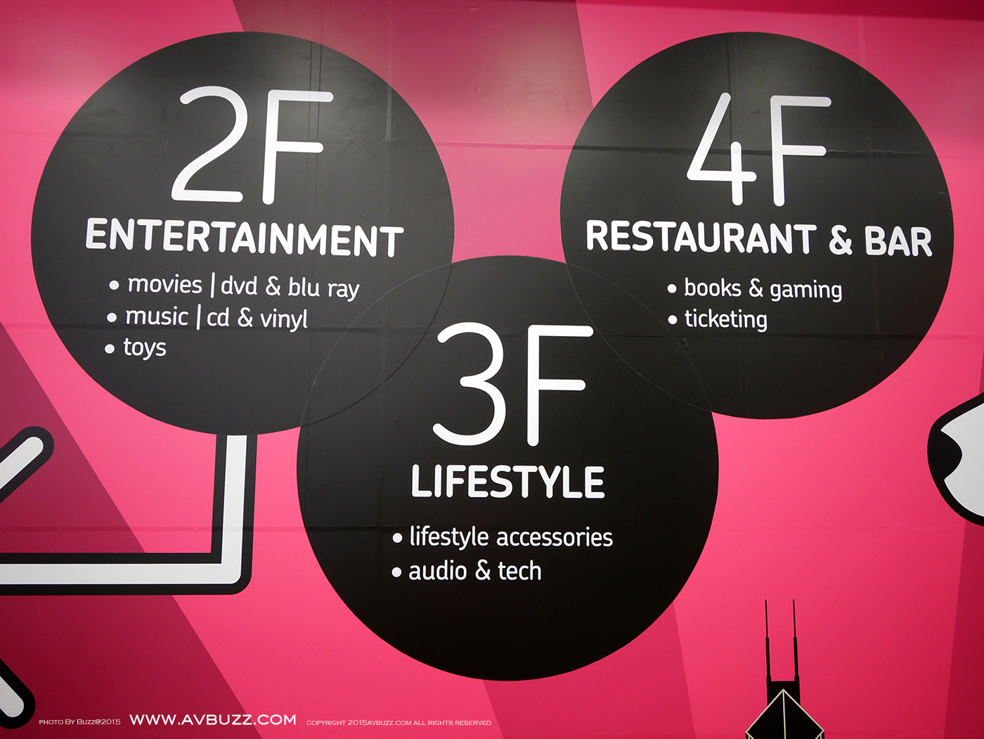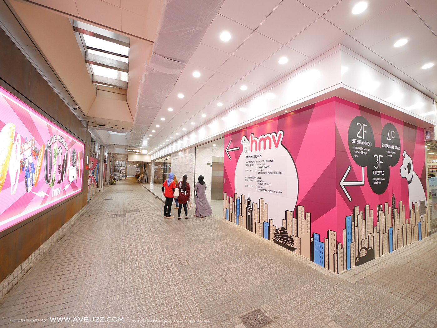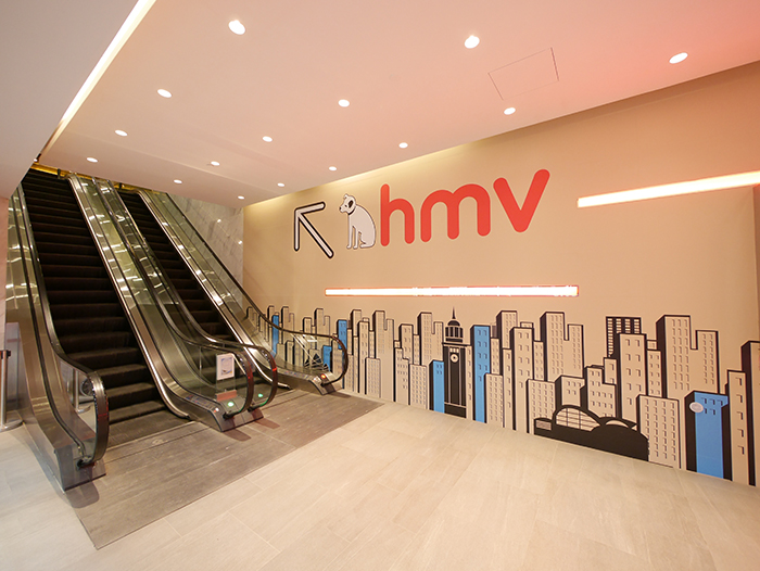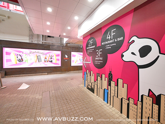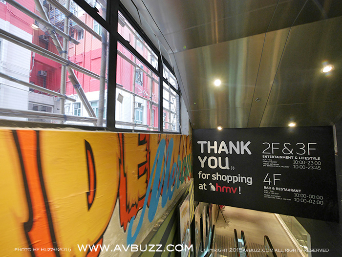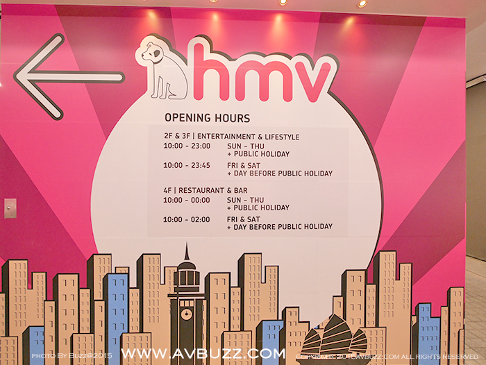 佈置搶眼的指示可見,由這裡進入,並有營業時間,也可以知道這裡的HMV是分為二樓,三樓和四樓,共三層。三層所屬性質,集「音樂‧時尚‧餐飲」一身,在這裡的搶眼佈置得到簡介。留意到他們的營業時間嗎? 利害。