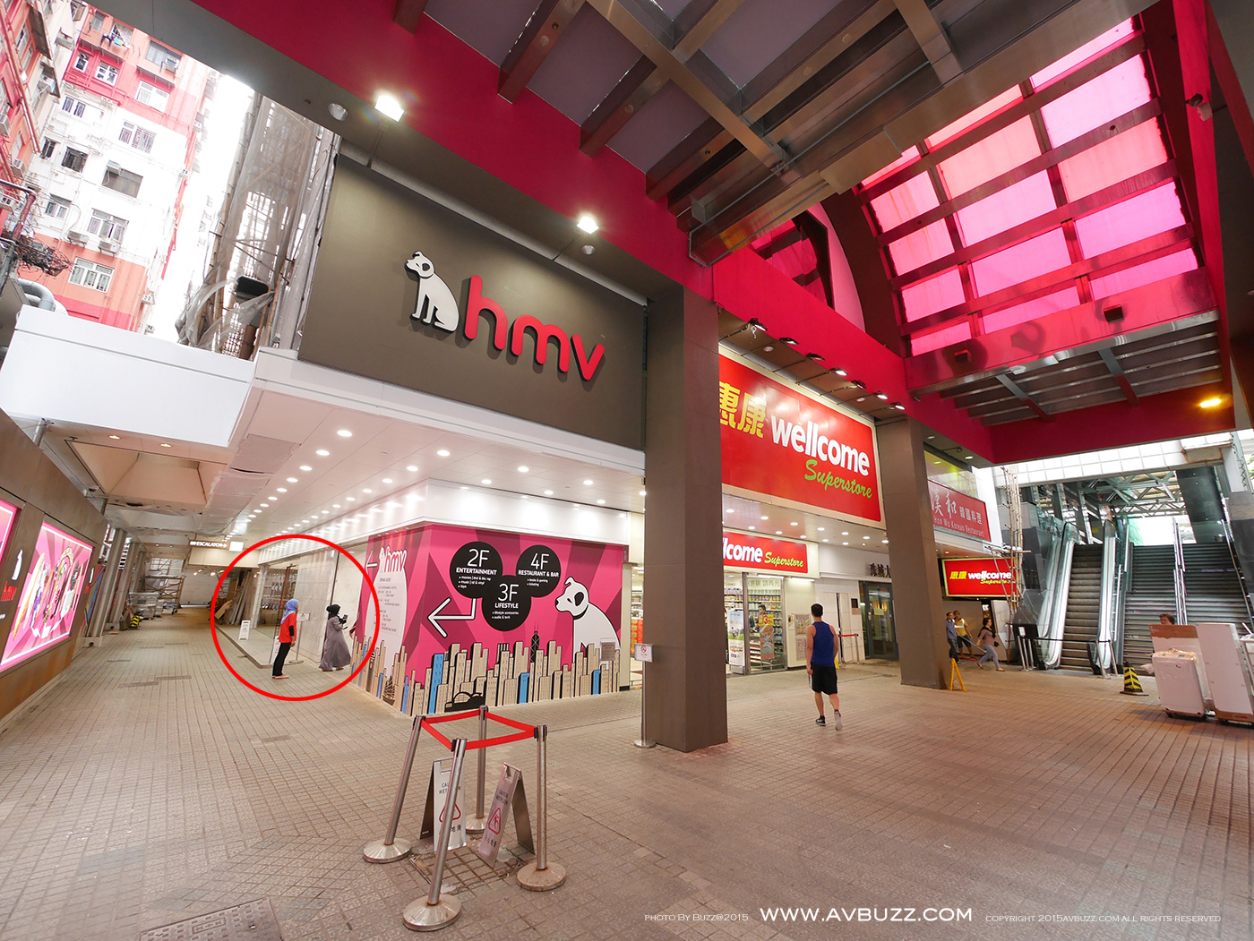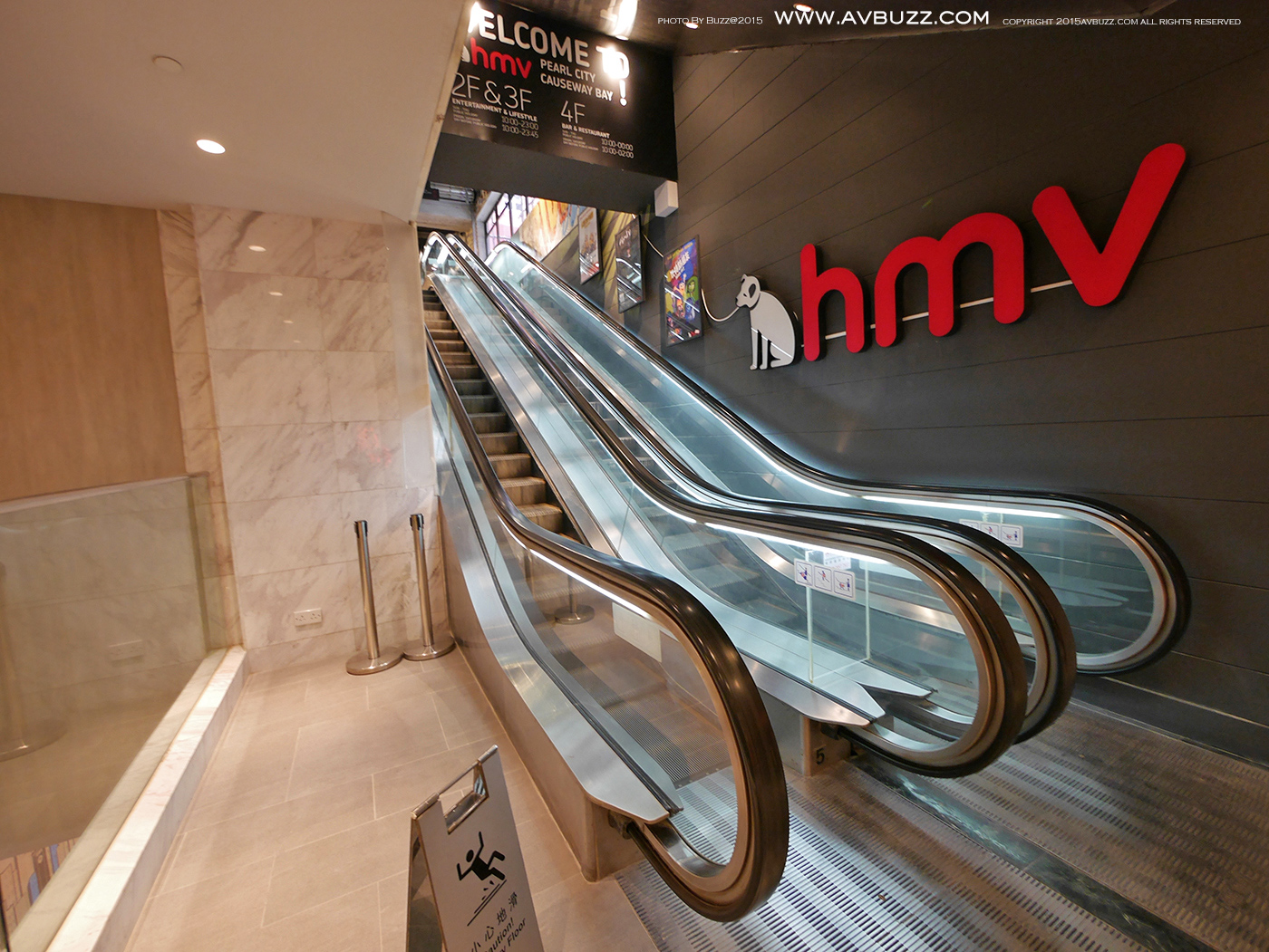 如圖所見,多行幾步,就可以見另一扶手電梯入口,同樣可到達HMV 各層。