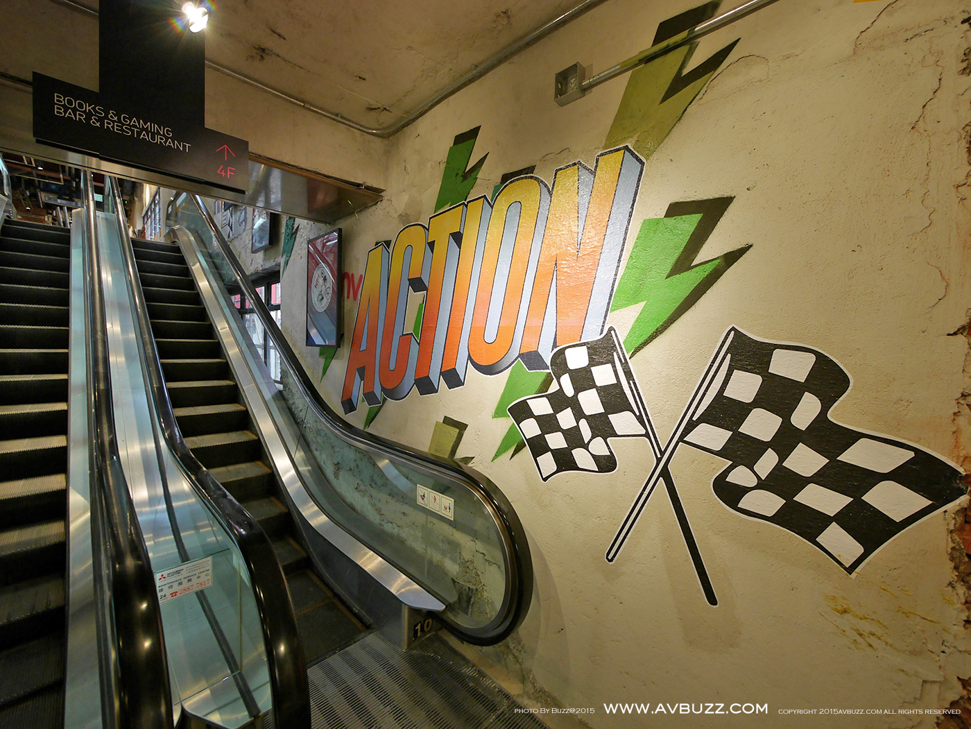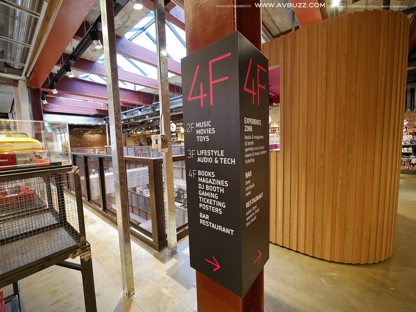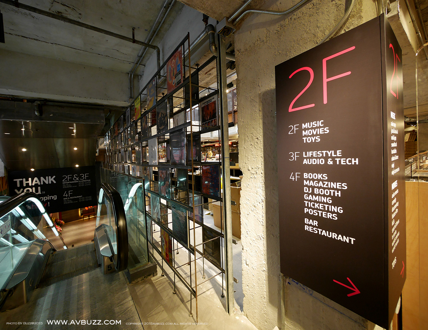 扶手電梯首先到達位於二樓的樓層,透過指示牌可大約了解各層性質。