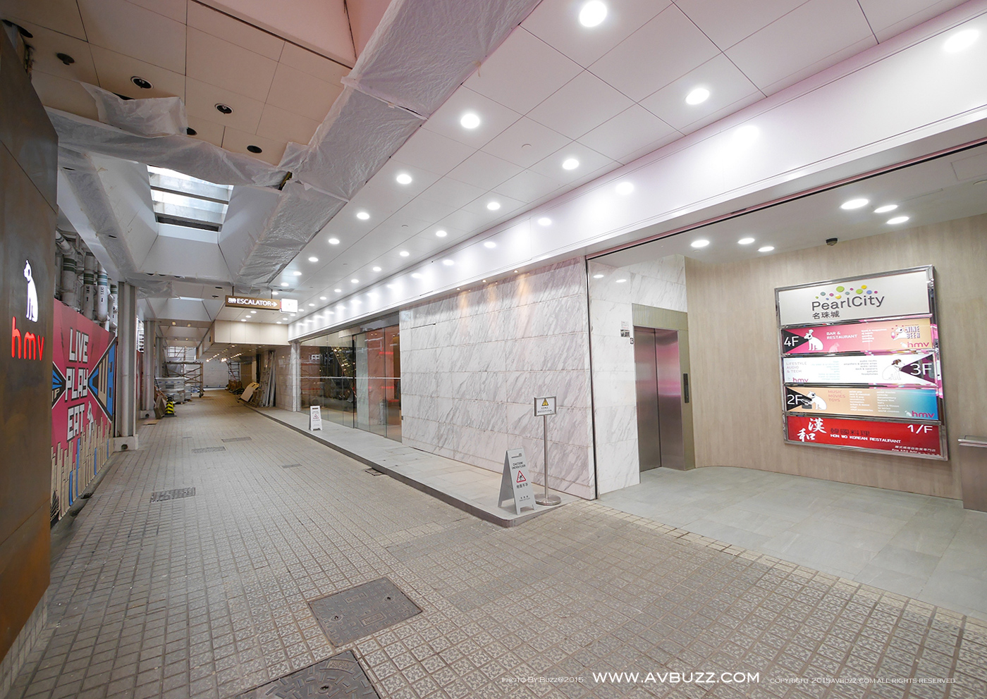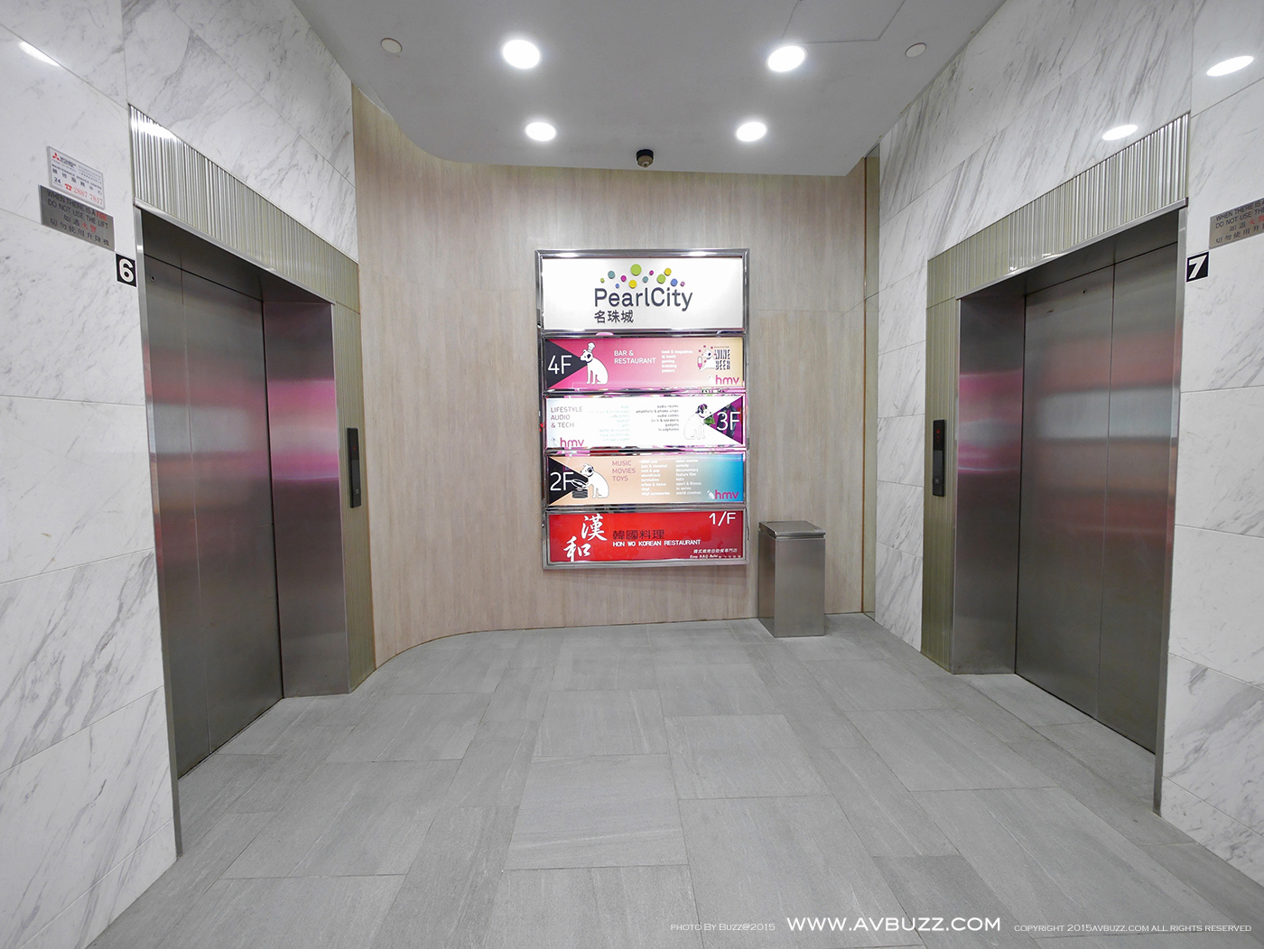 來到名珠城入口了,兩部上下升降電梯,任意一部都可到達位於二樓,三樓或四樓的 HMV。