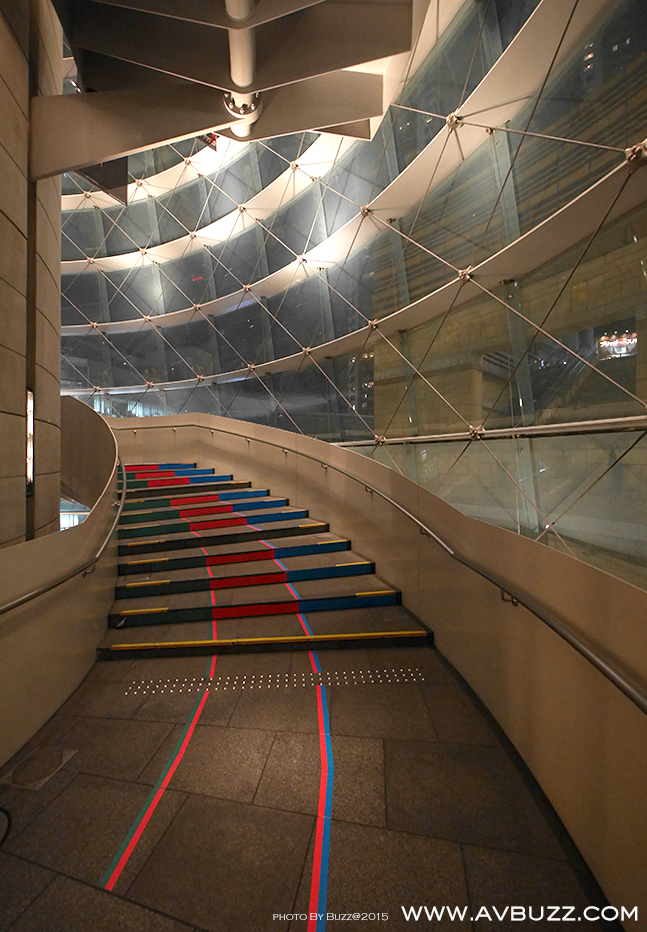无论乘坐铁路或是步行来到六本木,目的地都是被这建筑物所阻碍着,穿过她就能到达目的地。 如坐 东京地下铁日比谷线 来到的话,图中所见,正前方的三条扶手电梯,就是由地底运送大家上来平台位置。如步行来的话,图中右手边有楼梯可到达平台。