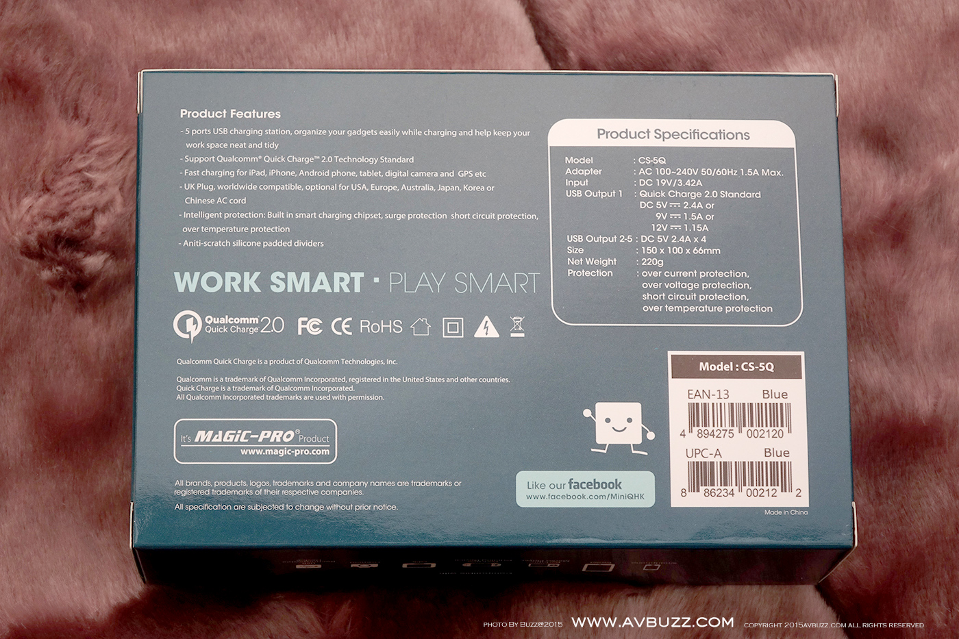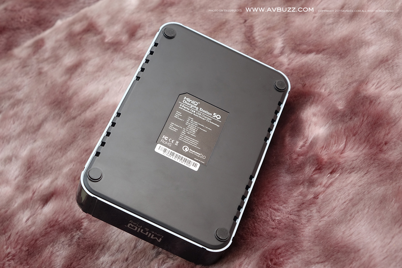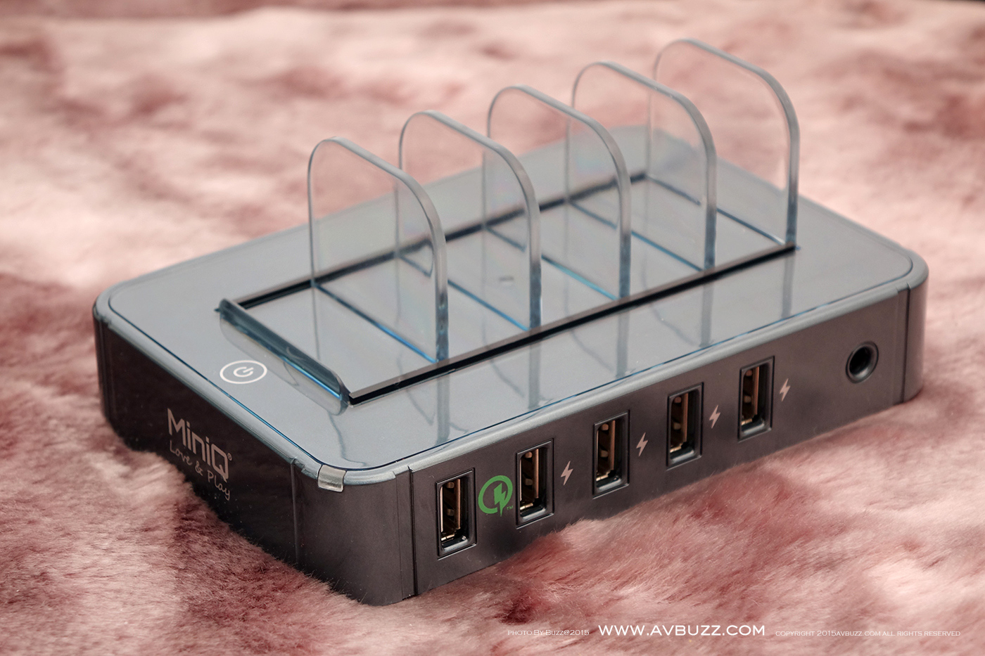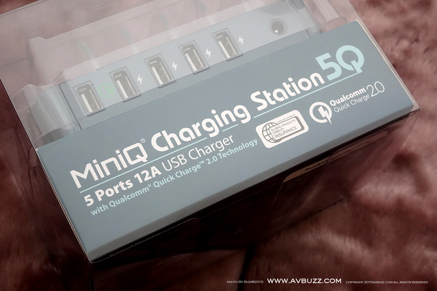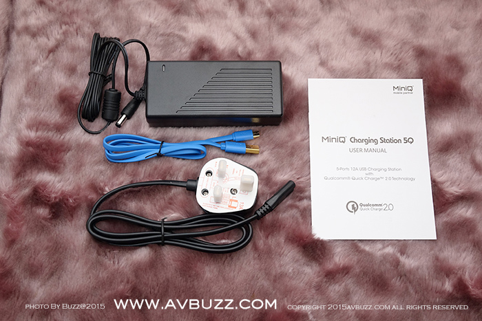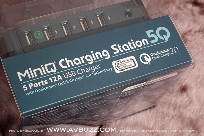 MiniQ 近日推出一款售價港幣 $ 498 ,名為 Charging Station 5Q 座台充電機,話得5Q 可理解到即係有5個 USB 充電位啦,當中包括 一個 Qualcomm Quick Charge 2.0 和 4 個 每個位有 2.4A 充電口。圖中所現就係呢款5位USB充電器包裝。